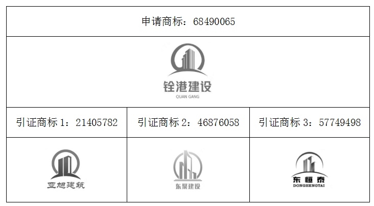 由于我司律师对商标进行了细致分析,条理清楚、有理有据,商标局最终裁定第68490065号“铨港建设 QUAN GANG”商标予以初步审定。