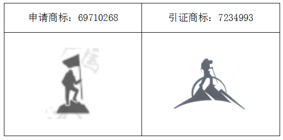 申请商标为图形商标,以登山的人物造型为设计主体,山坡的表面较为圆润,登山人将手中的旗帜插向山峰的一角。