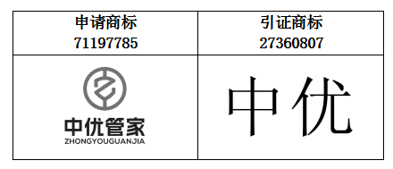 “中优管家”商标被驳回案例。我司律师从双方的含义、外观等进行分析,区分了双方的显著性不同,最终使申请商标顺利通过复审。