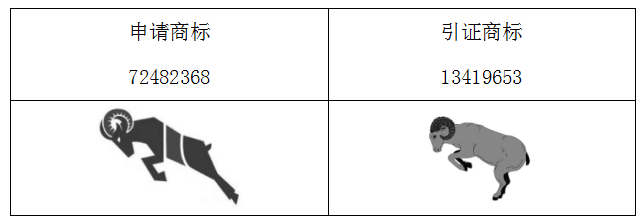 申请商标整体为几何化构图。公羊面向左侧,羊角呈圆形。羊耳朵为角状,眼睛为小三角形空白。羊身体分为三段,中间部分为一个右侧为弧形的梯形。