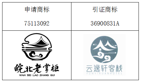 申请商标的整体含义就是位于安徽北部的历时长久的店主。引证商标的整体含义就是适合节操高洁的隐逸之士居住的带有小窗的旅馆。