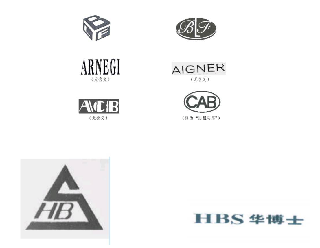 商标由三个或者三个以上外文字母构成,顺序不同,读音或者字形明显不同,无含义或者含义不同,使商标整体区别明显,不易使相关公众对商品或者服务的来源产生混淆的有:
