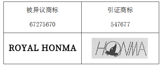 “ROYAL HONMA”商标被异议案例。我司律师细究被异议商标的含义、文字结构等方面,与引证商标做出区别,最终使申请商标异议答辩胜诉。
