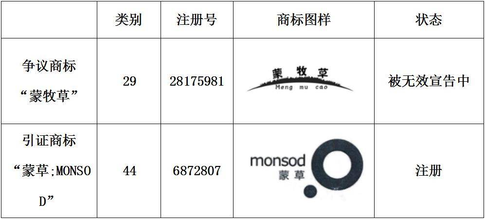 三、“蒙牧草”为答辩人所独创,具有独特的情怀和内涵,经答辩人长期宣传使用,已具有一定的知名度和影响力。申请人提供引证商标的使用证据只能证明引证商标已经实际使用,但争议商标和引证商标并不构成近似商标,引证商标的使用证据不能说明消费者会将两商标误认、混淆。