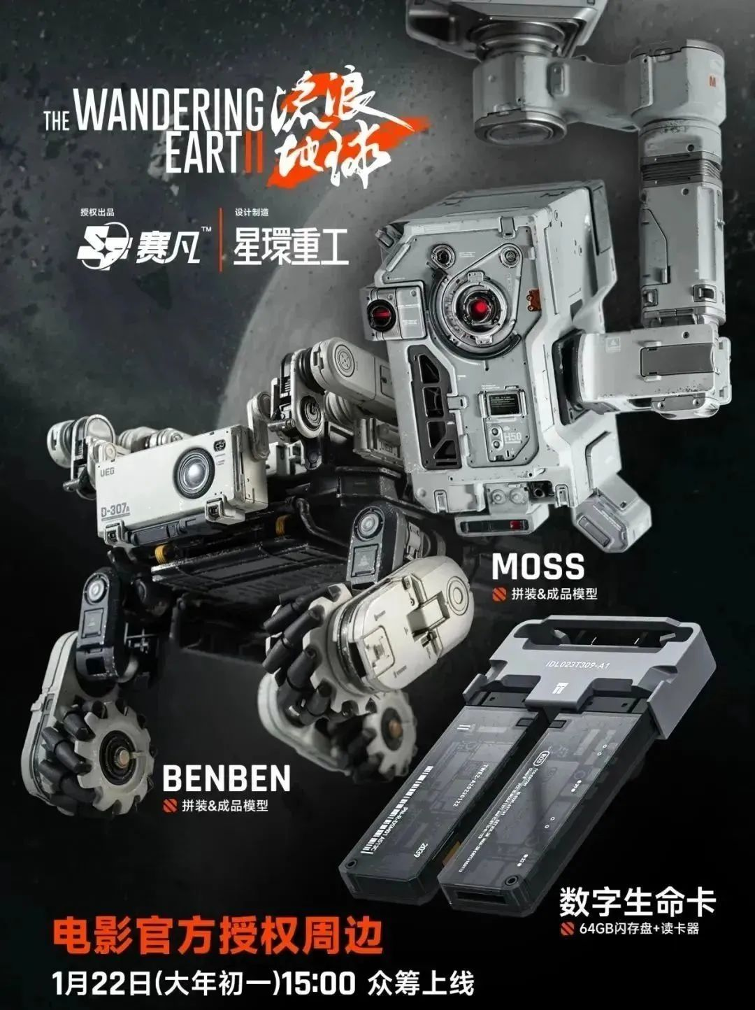 1月22日《流浪地球2》上映当天,电影官方授权商赛凡科幻空间就发起了模型周边的众筹项目。该项目在淘宝阿里鱼旗下的造点新货平台进行,出品方为赛凡科幻空间,笨笨与MOSS的模型设计制作方为星环重工。众筹项目原定于2月23日结束,时间期限为一个月,然而,上线仅一分钟10万元的目标金额就已达成。