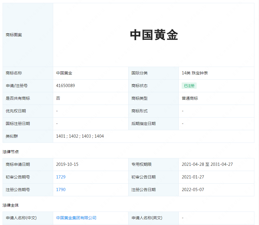 再如“中国黄金”。中国黄金集团有限公司是国务院批准设立的我国黄金行业的国有企业,“中国黄金”为国资委批复认可的企业简称,经长期使用和广泛宣传在我国具有唯一性和高知名度,具有商标显著性。因此,在遭遇九家单位异议的情况下,仍然成功获准注册。
