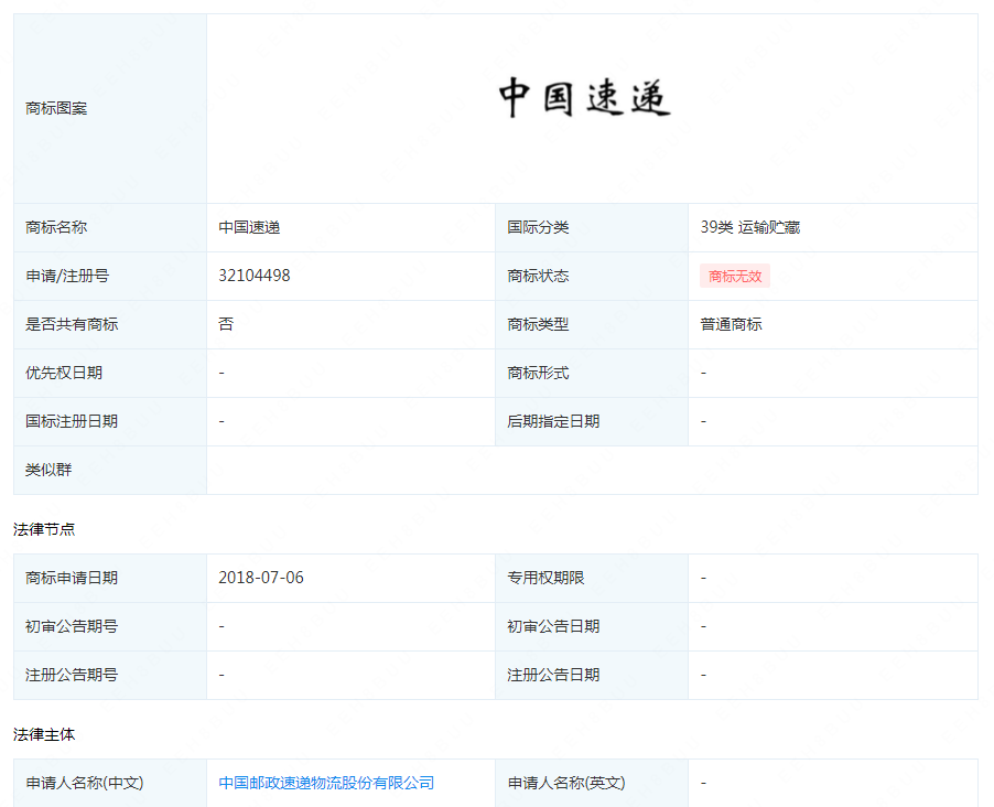 之前“中国速递”商标申请同样被驳回,商标局认为,申请商标“中国速递”指定使用在“包裹投递”等服务上,缺乏显著性,不得作为商标注册,申请人提交的证据不足以证明申请商标经过使用取得显著特征,并便于识别,可以作为商标注册。诸多含有“国”字商标注册失败或被无效的案例。
