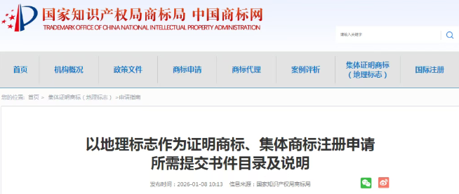 以地理标志作为证明商标、集体商标注册申请所需提交书件目录及说明