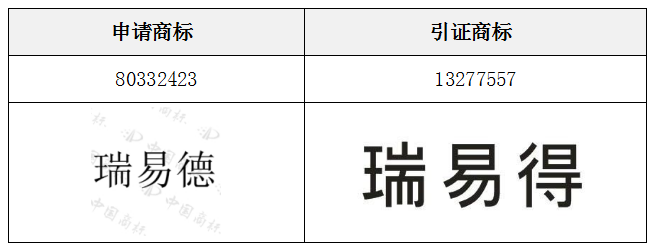 由于我司律师对商标进行了细致分析,条理清楚、有理有据,商标局最终裁定第80332423号“瑞易德”商标予以初步审定。