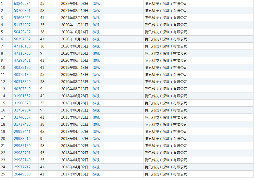 在这个短视频炙手可热的年代,腾讯一直想把微视扶植起来,虽然经历了外界诸多猜疑,导致现在微视不温不火,但是既然是自家产品,腾讯肯定要好好保护,迄今为止,腾讯申请了多件“微视”商标和“腾讯微视”商标,这些商标中包含文字商标和图形商标。