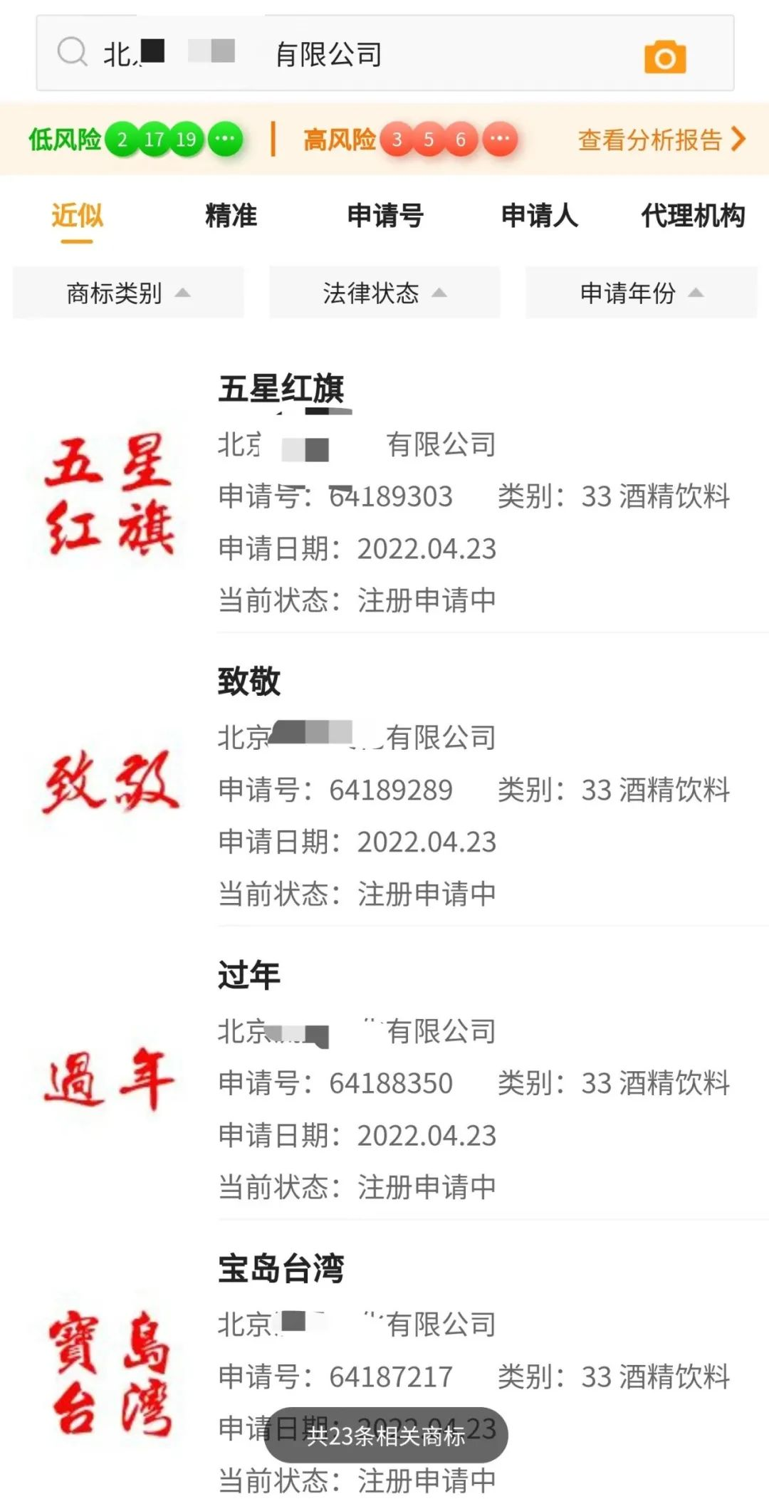 比如这家北京某文化有限公司,首先商标难以通过,注册费用白花,注册这样的名字,是违反商标法规定的,轻则罚款,重则要追究其刑事责任的。我们看下面的一些截图。